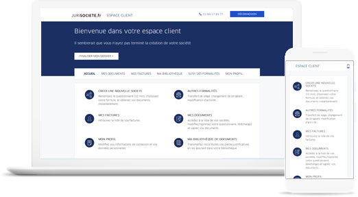 Jurisociete.fr est une plateforme de gestion en ligne de toutes vos formalités juridiques : création de sociétés, modifications statutaires, Ago annuelle.
